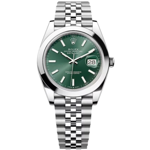 The Rolex 41mm Mint Green Dial combines modern elegance with timeless craftsmanship. Its fresh mint green sunray dial offers a distinctive yet refined look that stands out while remaining versatile. Housed in a 41mm Oyster case made from durable Oystersteel and paired with the iconic Jubilee bracelet, it delivers precision, comfort, and everyday luxury.