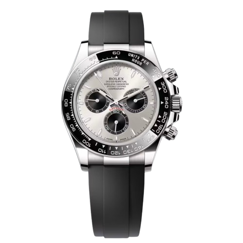 2022 Rolex Cosmograph Daytona “Ghost” 116519LN in exceptional condition, crafted from 18ct white gold with a striking steel-grey “Ghost” dial and black Cerachrom ceramic bezel. Fitted on a comfortable Oysterflex bracelet and powered by Rolex’s in-house calibre 4130 automatic movement, offering outstanding precision and a 70-hour power reserve. Supplied as a full set with box and papers, this highly sought-after and now discontinued model blends subtle luxury with sporty appeal, making it a standout piece for collectors and enthusiasts alike.