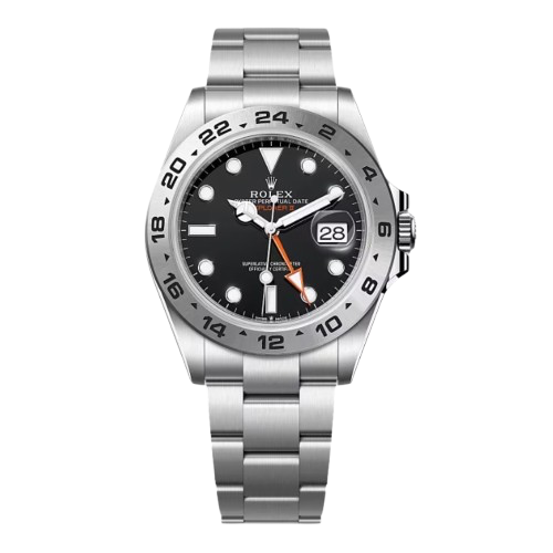 The 2023 Rolex Explorer II 226570 is a modern classic from Rolex’s professional sports range, combining rugged capability with everyday wearability. Crafted from durable 42mm Oystersteel, it features the iconic fixed 24-hour bezel and distinctive orange GMT hand for tracking a second time zone. Powered by the advanced Rolex Calibre 3285 automatic movement with an impressive 70-hour power reserve, it delivers outstanding precision and reliability. Finished with the signature Oyster bracelet and secure Oysterlock clasp, the Explorer II is a versatile and highly sought-after model that perfectly balances adventure-ready functionality with timeless Rolex design.